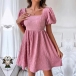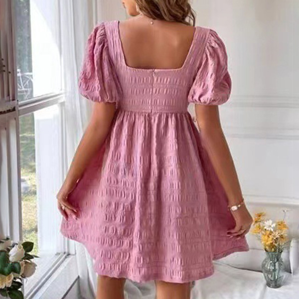 Casual Solid Color Square Neck Short Sleeve Mini Dress