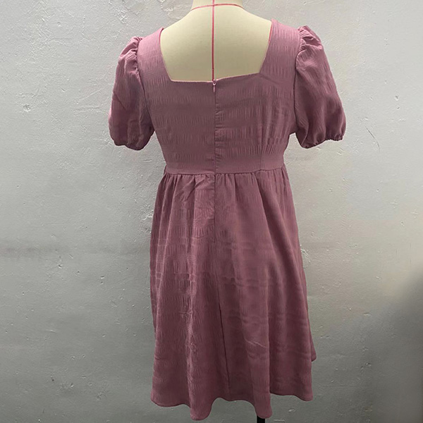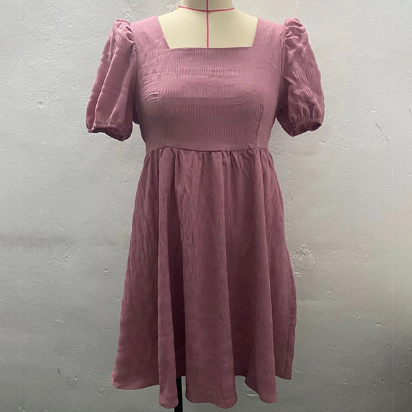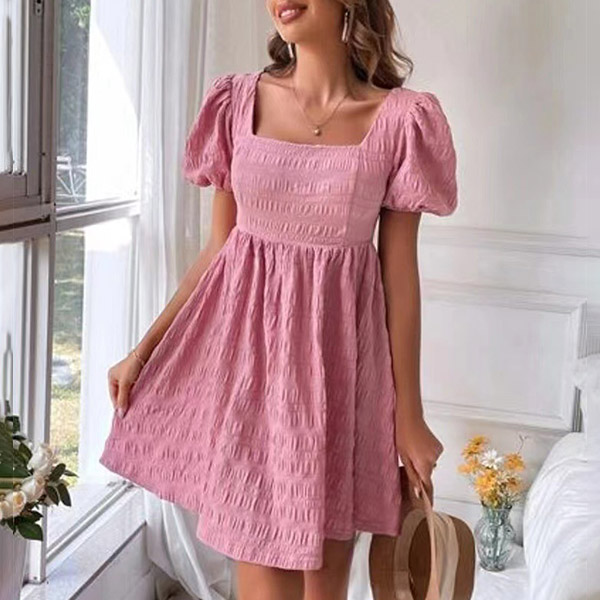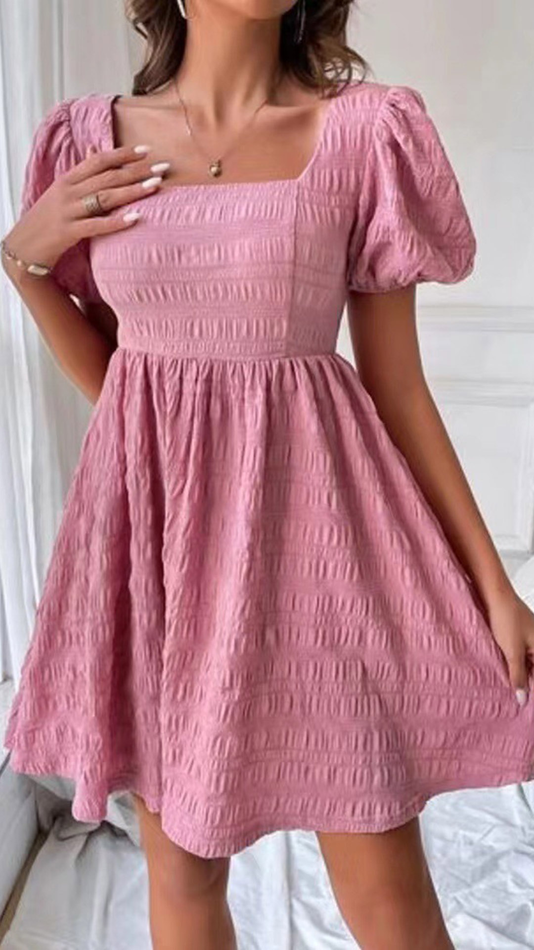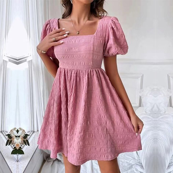 How about this dress? The dress features a square neckline, adding a touch of elegance and femininity to the dress. The short sleeves provide coverage while still allowing for movement and comfort. Hope you like it.