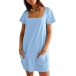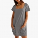 Casual Solid Color Square Neck Short Sleeve Patch Pockets Mini Dress