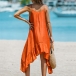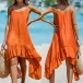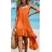 Casual Solid Color Square Neck Sleeveless Irregular Ruffle Hemline Slip Dress