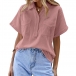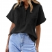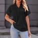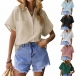Casual Solid Color Stand Collar Buttoned Short Sleeve Shirt