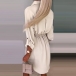 Casual Solid Color Stand Collar Buttoned V-neck Drawstring Long Sleeve-tab Shirt Dress
