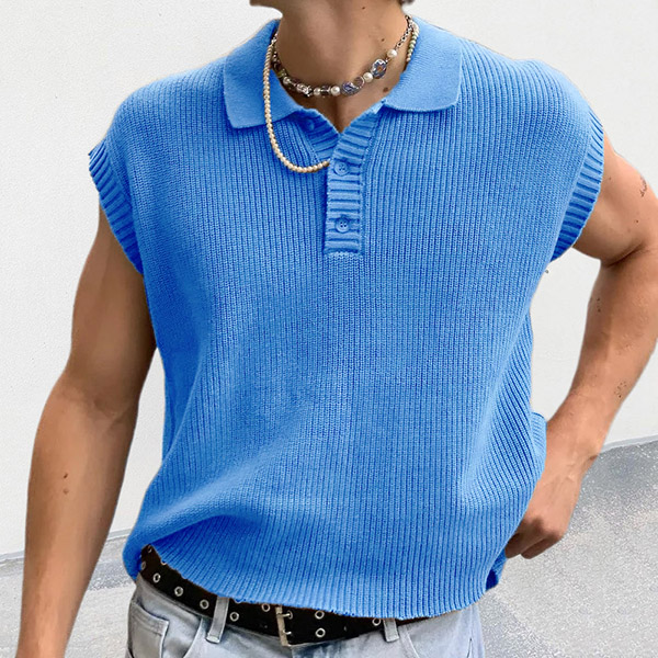 Casual Solid Color Stand Collar Knitted Sleeveless Shirt for Men
