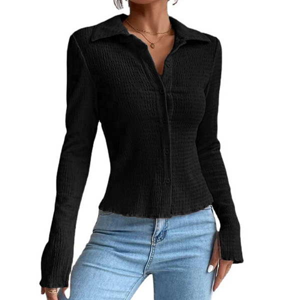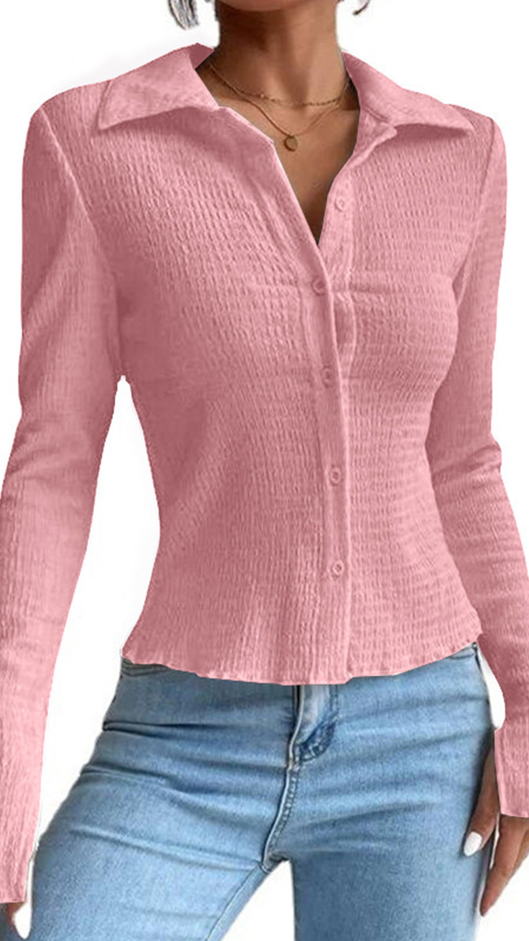 Casual Solid Color Stand Collar Long Sleeve Buttoned Shirt