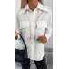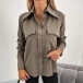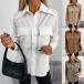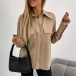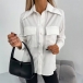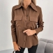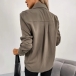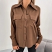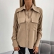 Casual Solid Color Stand Collar Patch Pockets Long Sleeve Blouse