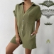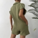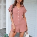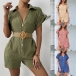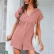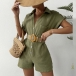 Casual Solid Color Stand Collar Short Sleeve Buttoned Romper