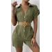 This romper is a versatile and stylish choice for those who want a comfortable yet fashionable outfit. It features a stand collar, short sleeves, and a buttoned front, creating a chic and casual look. Multi-colors avaible.