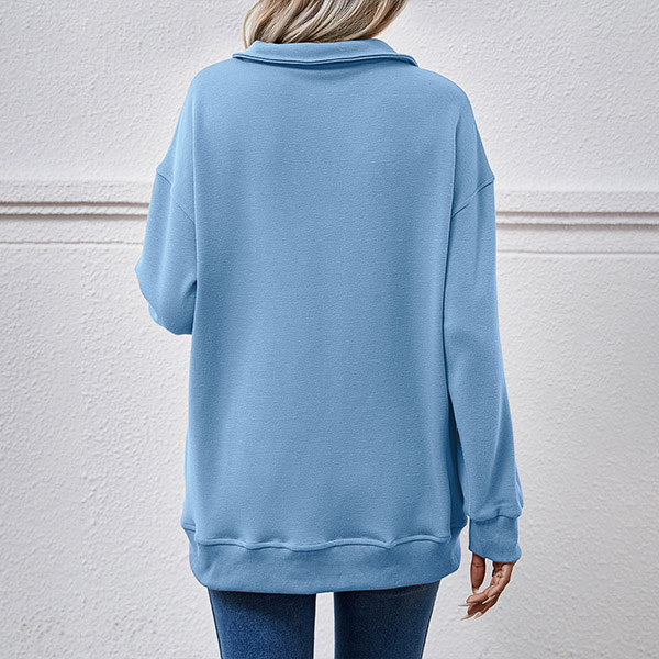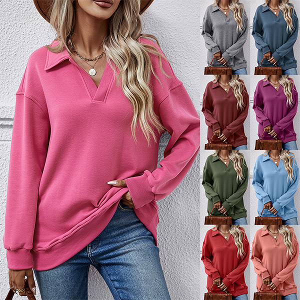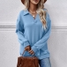 Casual Solid Color Stand Collar V-neck Long Sleeve Sweatshirt