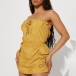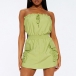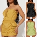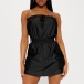 This romper features a classic solid color design, a strapless neckline, and a self-tie waist for a stylish and versatile look. Red and black, which one do you like?