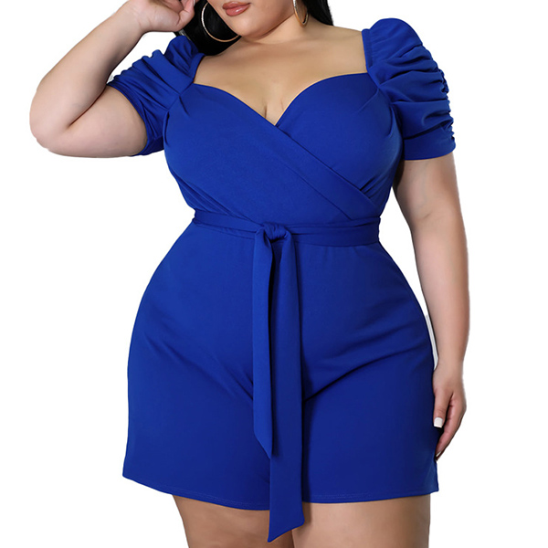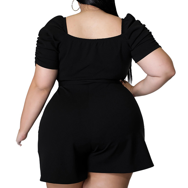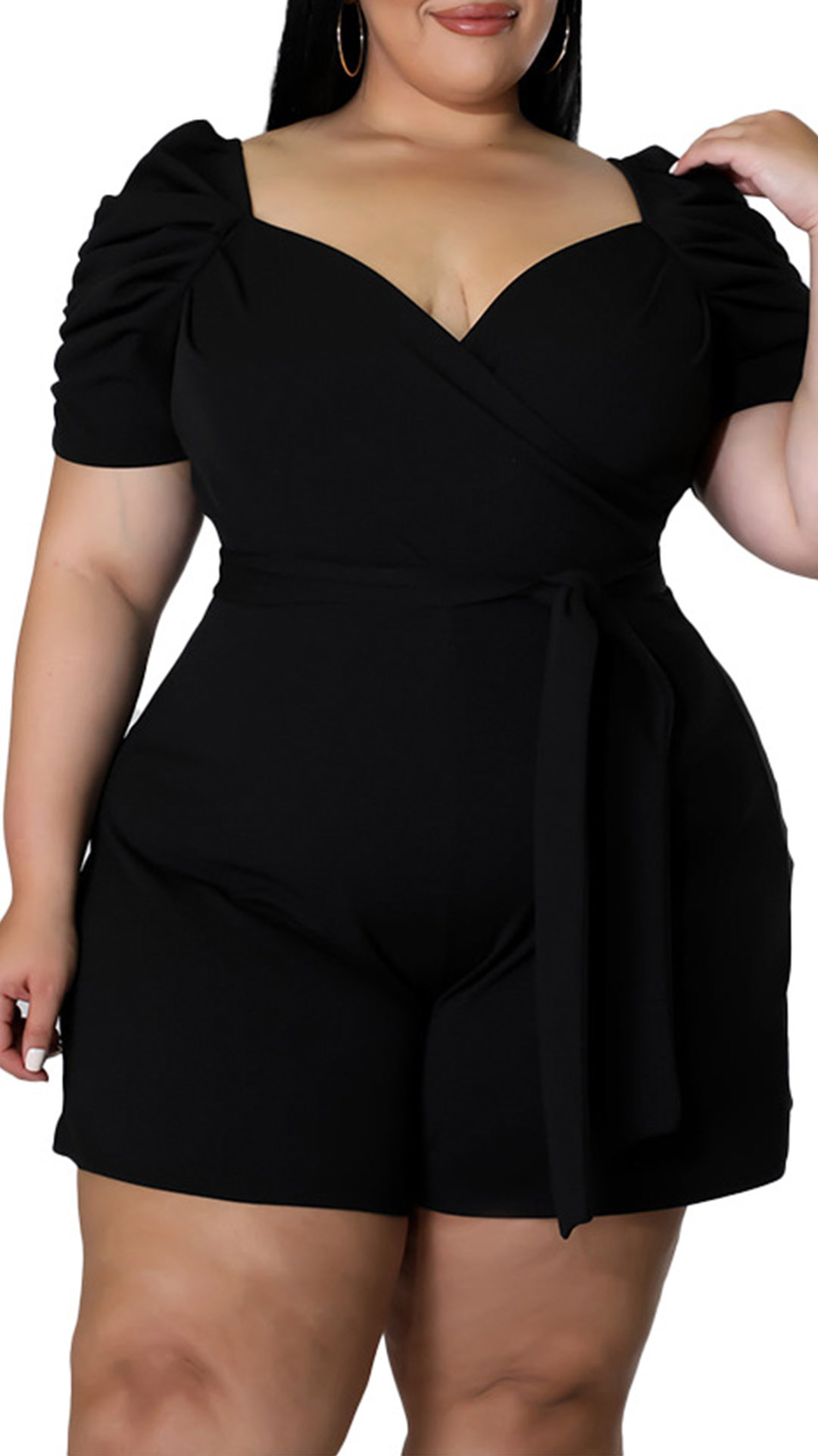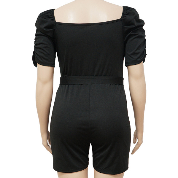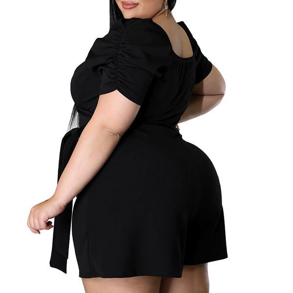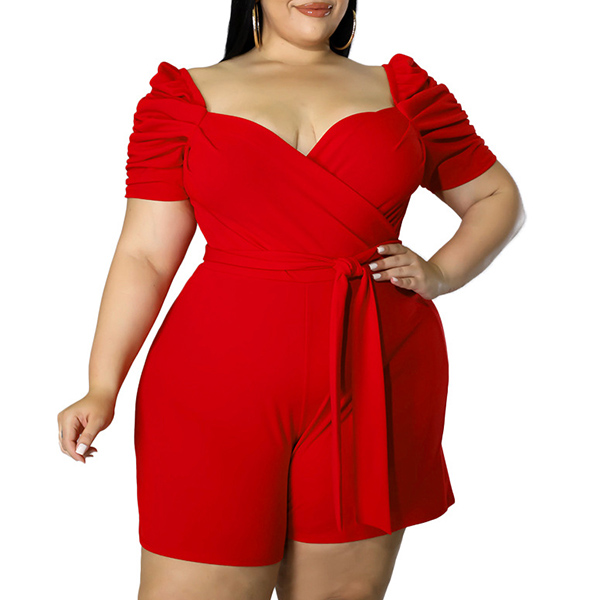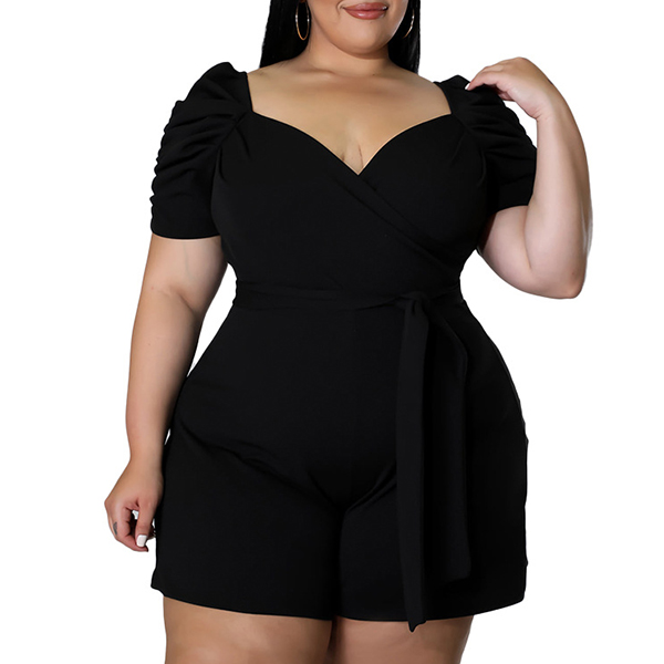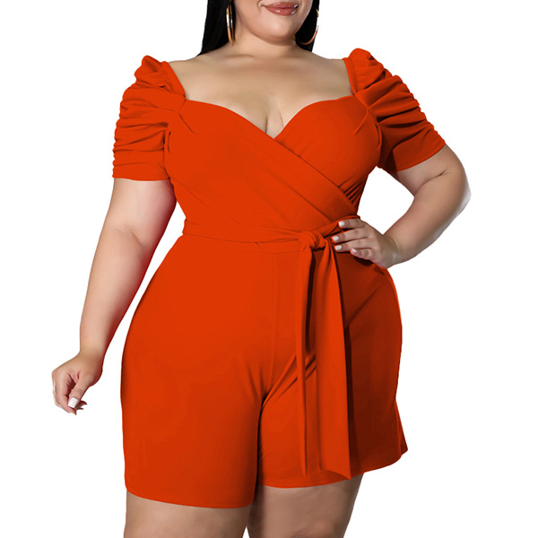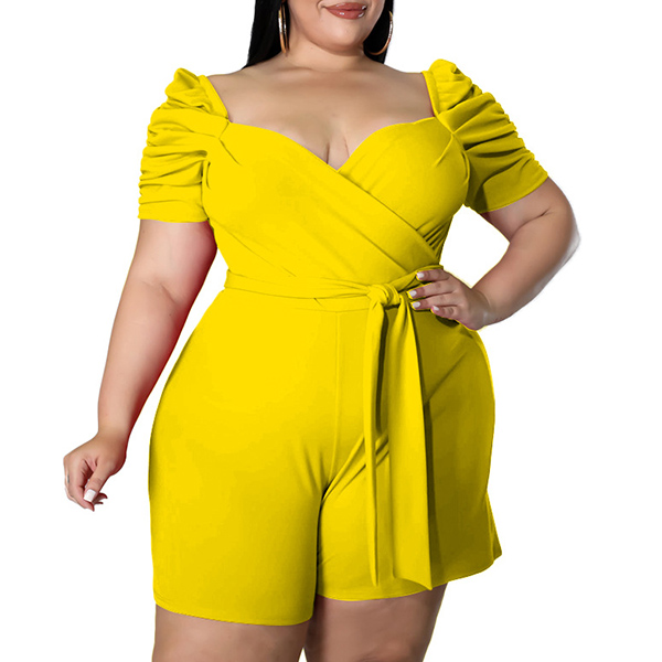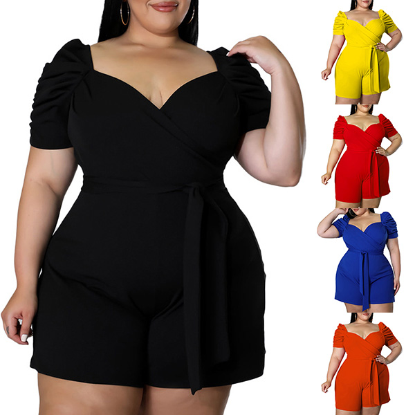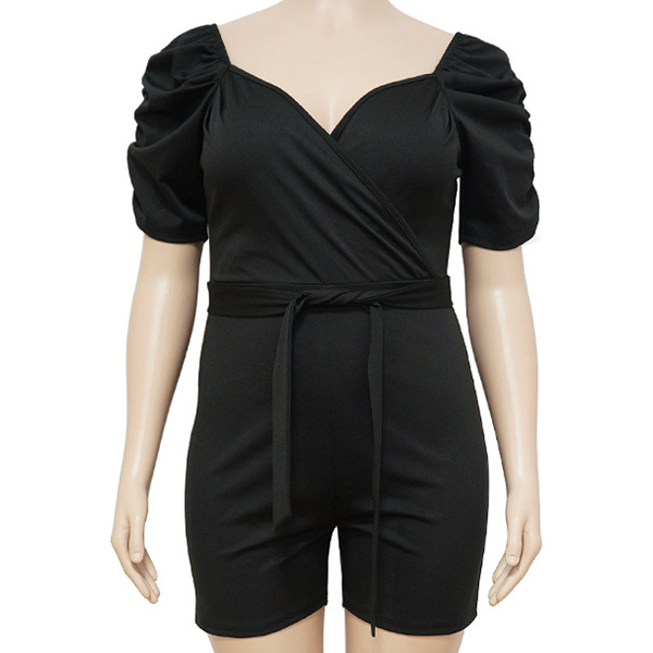 Casual Solid Color Sweetheart Neckline Short Sleeve Plus-sized Romper