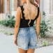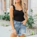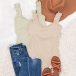 This is a casual solid color sweetheart top with thick shoulders. It is made of soft and comfortable fabric and has a flattering fit. It is perfect for a casual day out or a night in.
