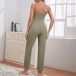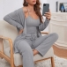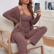 Casual Solid Color Three-piece Loungewear Consist of Nightgown, Cami Crop Top and Drawstring Pants