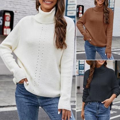 Casual Solid Color Turtle Neck Long Sleeve Sweater