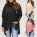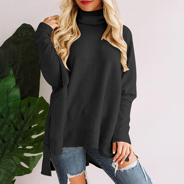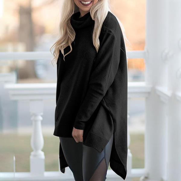 Casual Solid Color Turtleneck Long Sleeve High-low Hemline Knitted Shirt