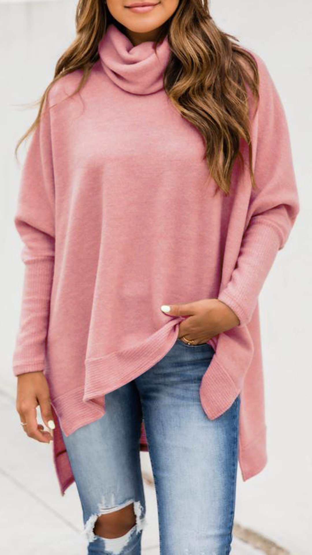 Look at this shirt! The high-low hemline adds a unique, modern touch to this classic silhouette. The turtleneck neckline and long sleeves provide warmth and comfort, while the soft, knitted fabric makes it lightweight and breathable. Wanna have one?