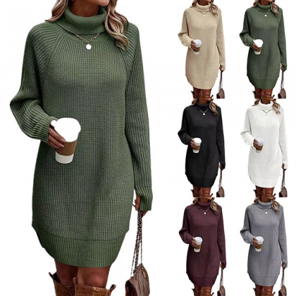 Casual Solid Color Turtleneck Long Sleeve Knitted Sweater Dress