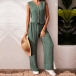 Casual Solid Color Two-piece Set Consist of Crop Shirt and Straight-cut Pants