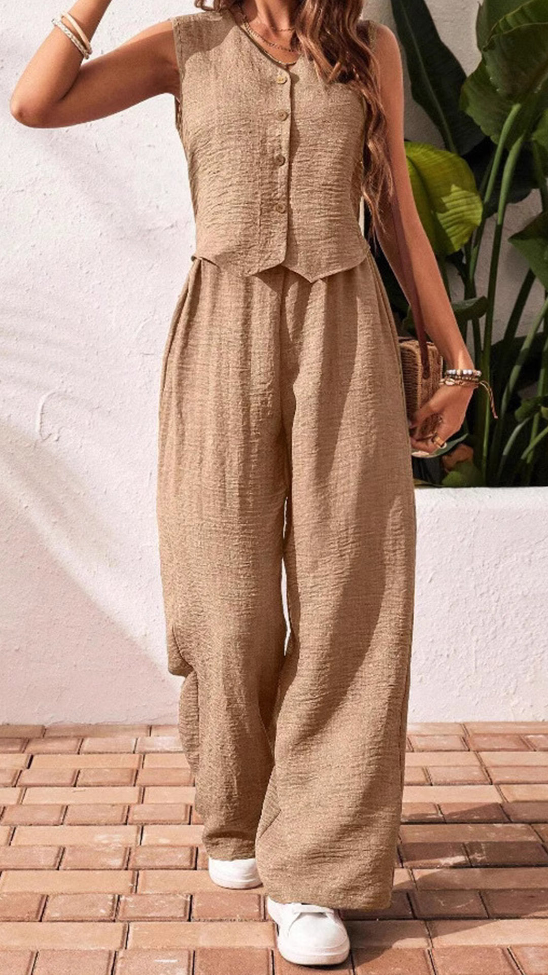 This Two-piece Set consisting of a Crop Shirt and Straight-cut Pants, a versatile and chic ensemble that exudes modern sophistication and casual elegance. Perfect for a day out with friends, a casual event, or a stylish outing, this two-piece set is designed to keep you looking fashionable and effortlessly cool.