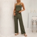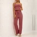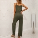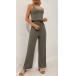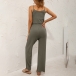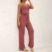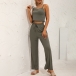 Casual Solid Color Two-piece Set consist of Crop Top+Wide-leg Pants