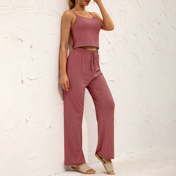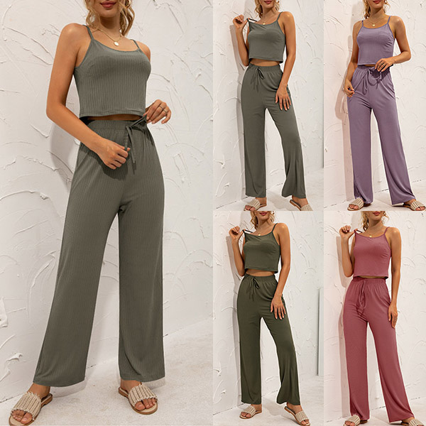 Looking for something comfortable and stylish to wear this summer? Check out this Two-piece Set! This set includes a crop top and wide-leg pants, both made from a soft and lightweight fabric. Hope you like it.