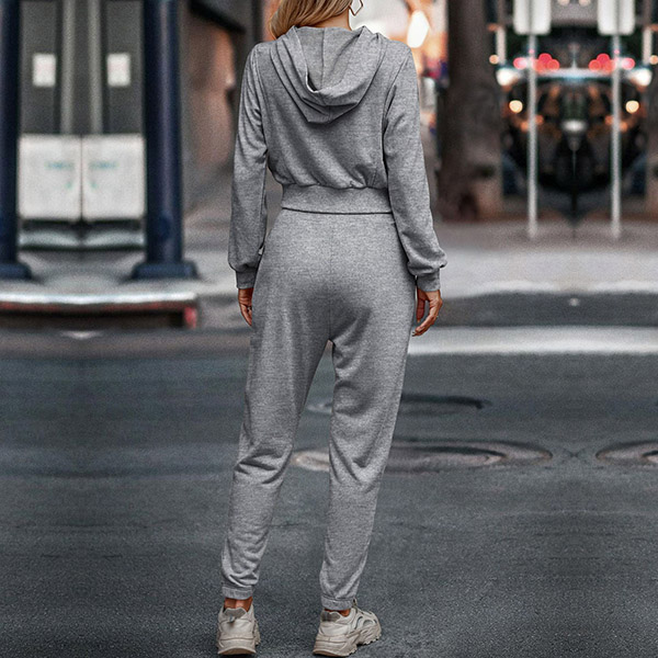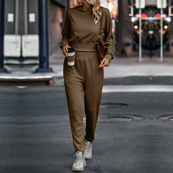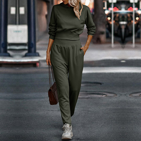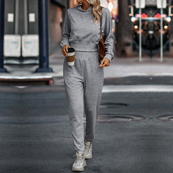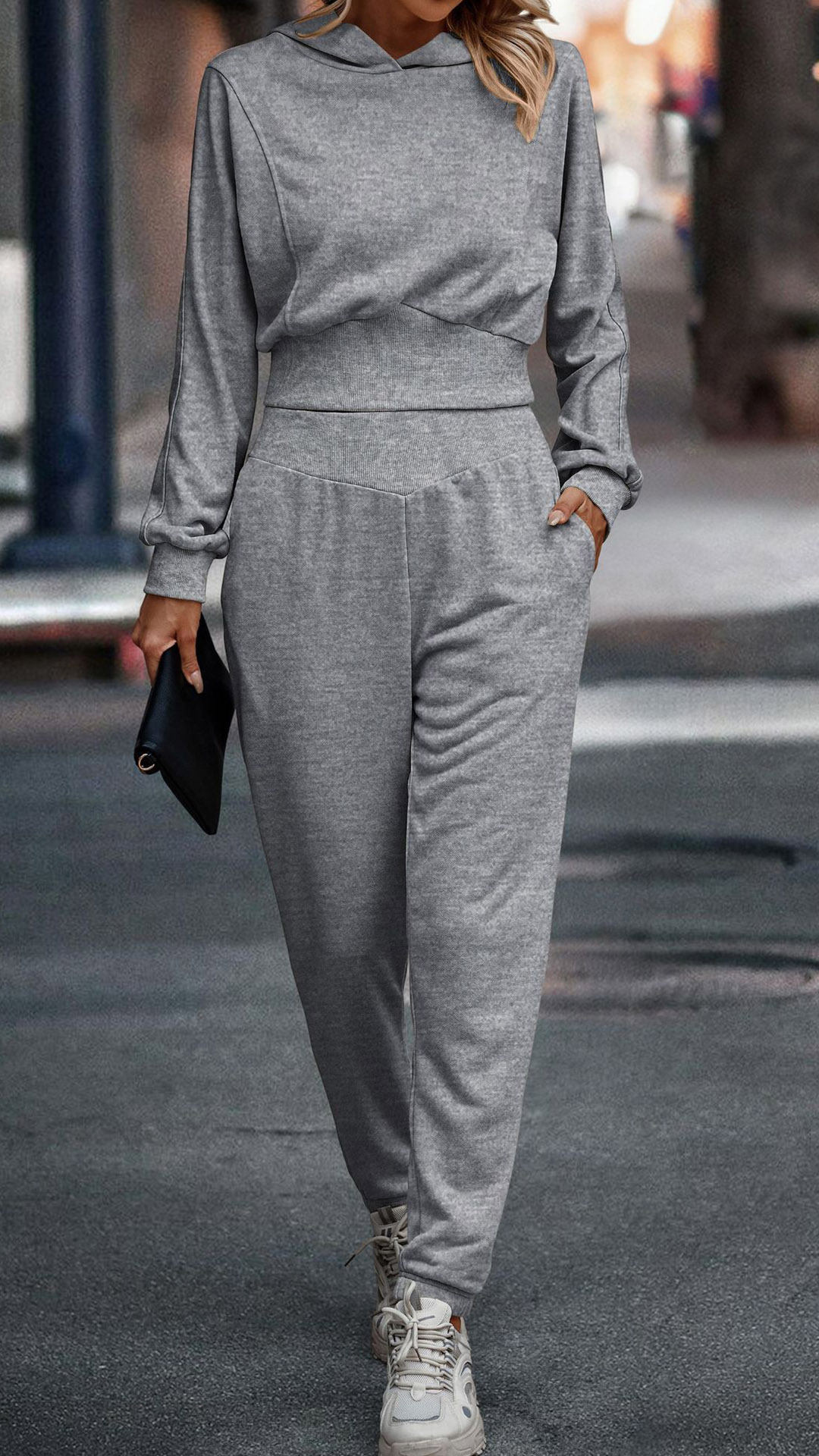 Casual Solid Color Two-piece Set Consist of Hooded Shirt and Pants