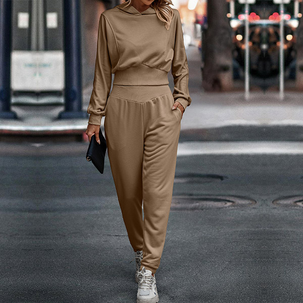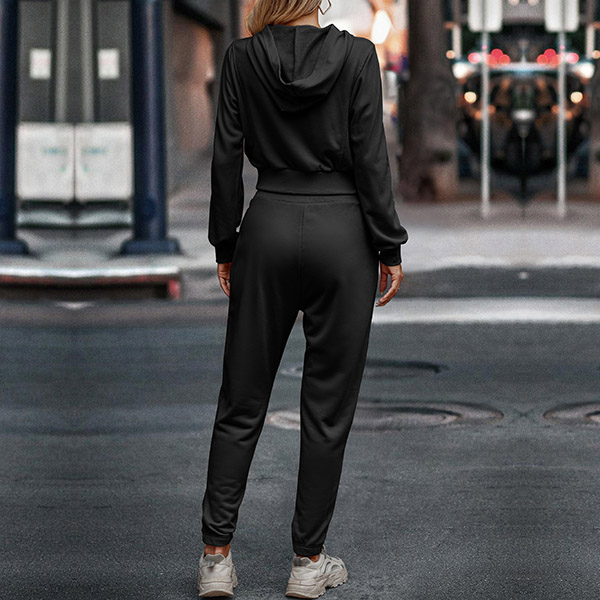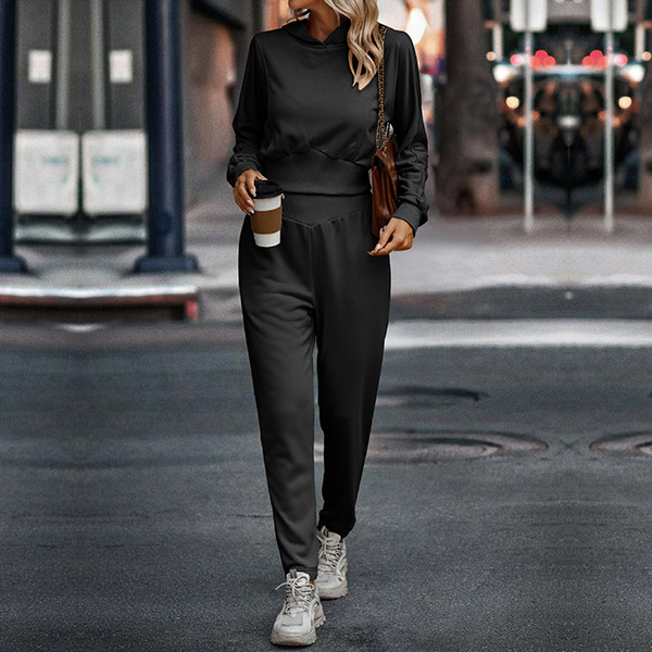 This two-piece set can be worn together for a coordinated look or mixed and matched with other items in your wardrobe. The hooded shirt adds a casual and sporty element to the outfit, while the pants offer a relaxed fit for comfortable wear. It's perfect for a laid-back day out or for casual occasions where you want to look effortlessly put together.