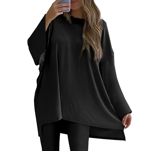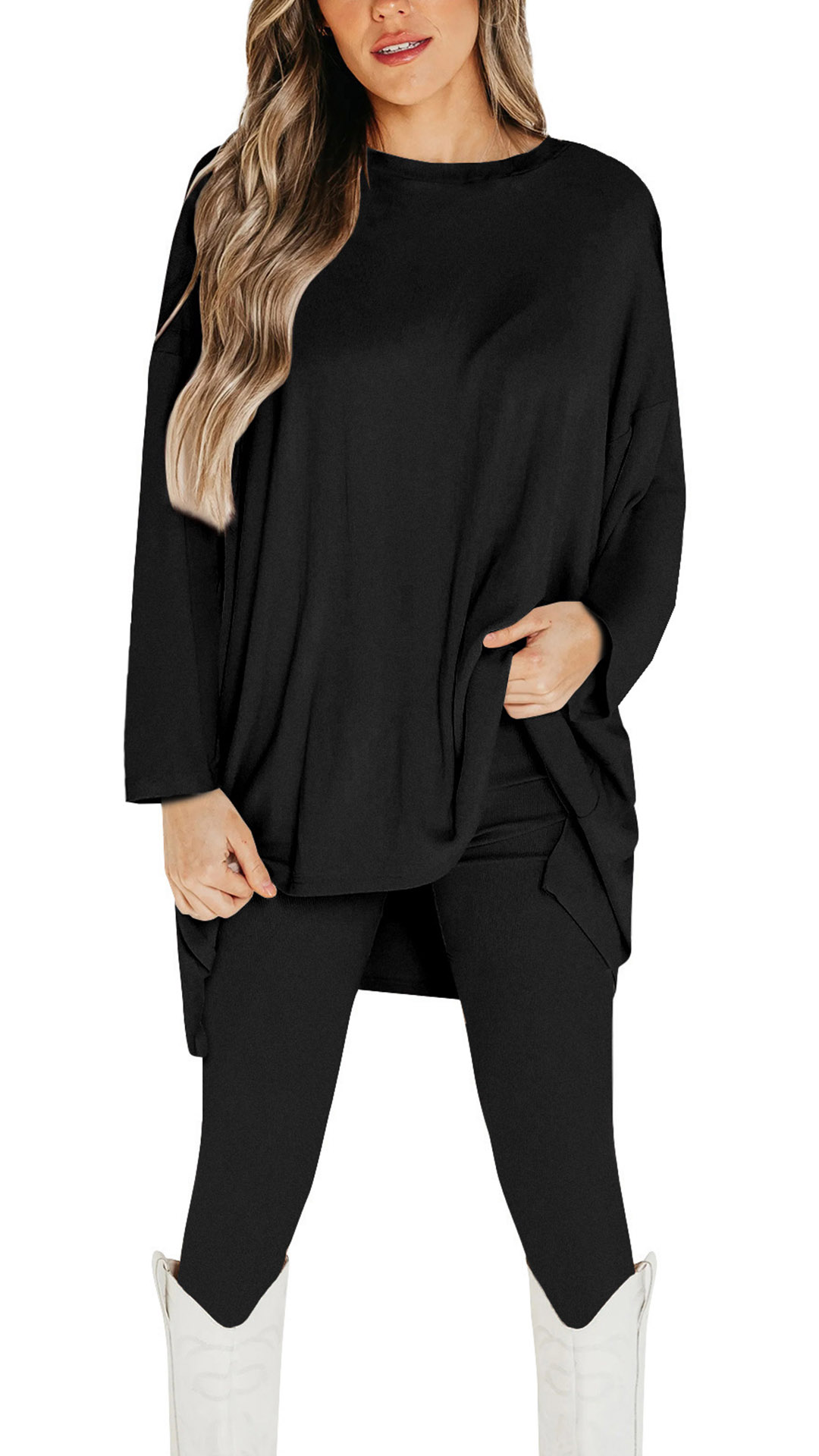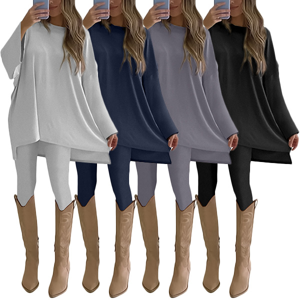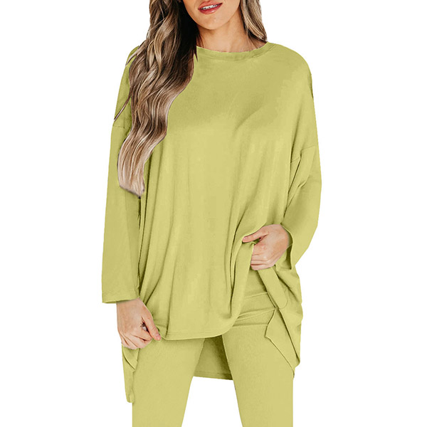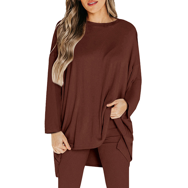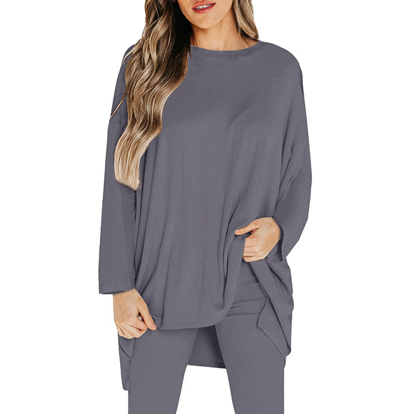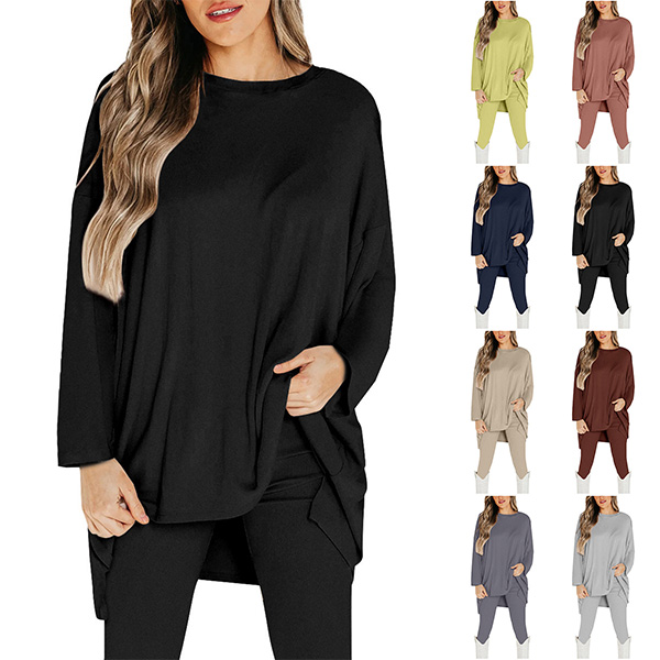 Casual Solid Color Two-piece Set Consist of Round Neck Shirt and Pants