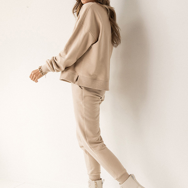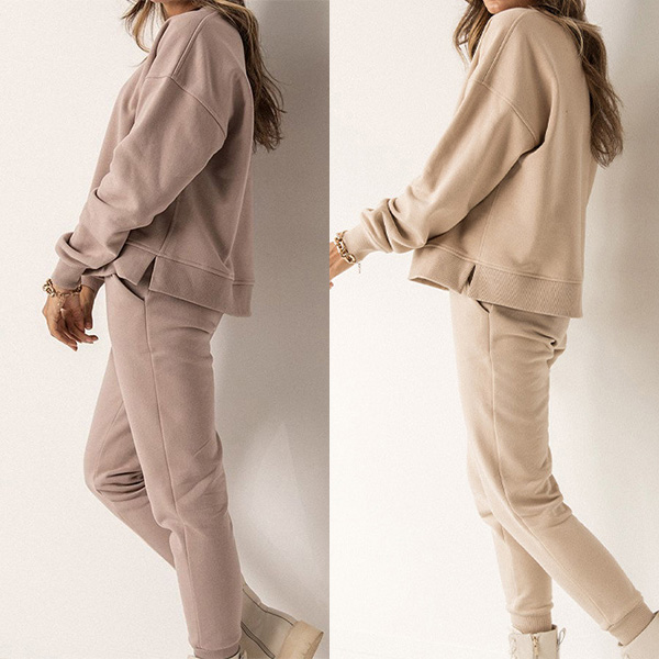 Casual Solid Color Two-piece Set Consist of Round Neck Sweatshirt and Sweatpants
