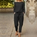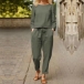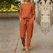 Casual Solid Color Two-piece Set Consist of Shirt and Drawstring Pants