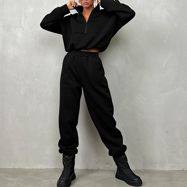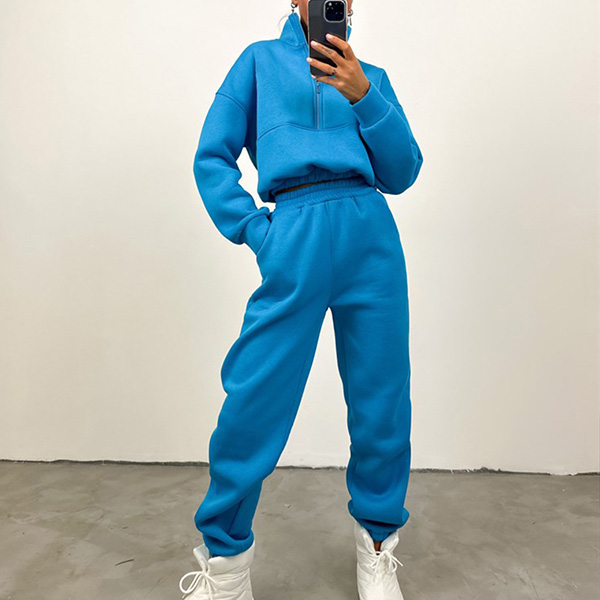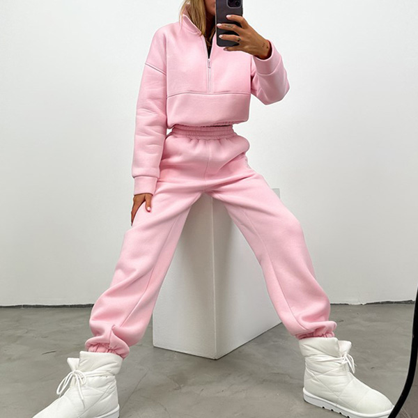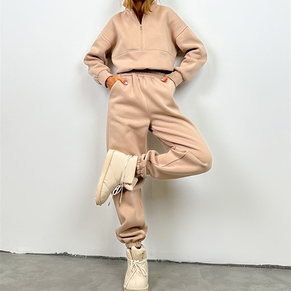 Casual Solid Color Two-piece Set Consist of V-neck Sweatshirt and Sweatpants