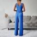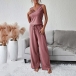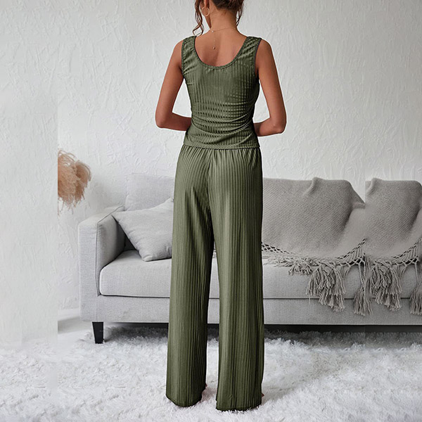 Casual Solid Color Two-piece Set Consist of V-neck Top and Wide Leg Pants