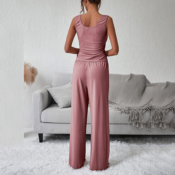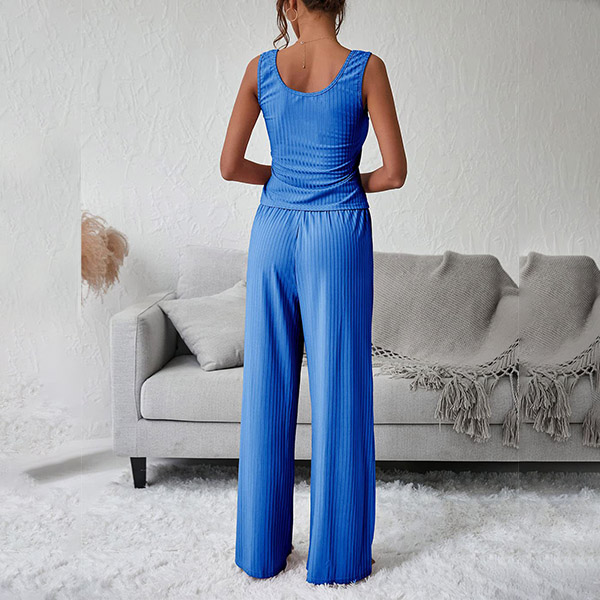 Whether you're running errands or just relaxing at home, this solid color two-piece would be a perfect choice. Made of soft and airy material, it would bring you ultra comfort wearing.