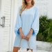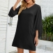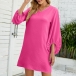Casual Solid Color V-neck 3/4-Sleeve Loose Mini Dress