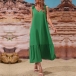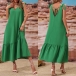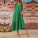 How about this green dress? The classic V-neck design is both flattering and feminine, while the midi-length cut is both classy and chic. The eye-catching green color is sure to make a statement and turn heads wherever you go.