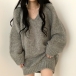 Casual Solid Color V-neck Batwing Long Sleeve Knitted Sweater