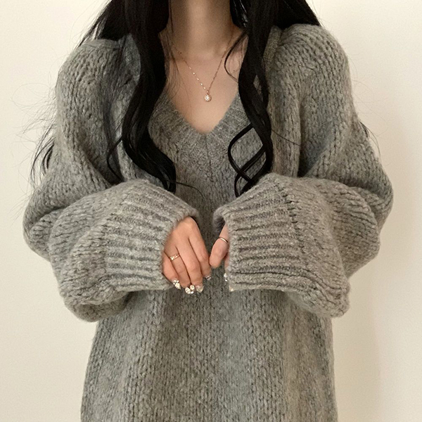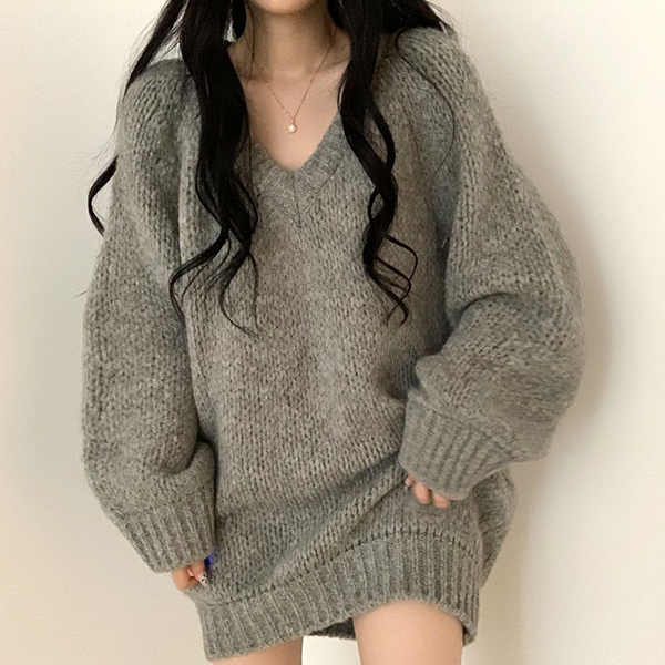 This comfortable sweater features relaxed solid color styling with flattering V-neck construction and dramatic batwing design for casual cozy elegance. Perfect for daily wear.