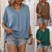 Casual Solid Color V-neck Batwing Sleeve Shirt