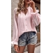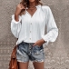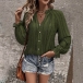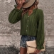 Casual Solid Color V-neck Buttoned Long Sleeve Shirt