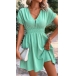 This is a trendy and versatile dress that combines a flattering V-neckline, cap sleeves, a cinched waist, and a mini length for a chic and casual look. Hope you like it.