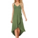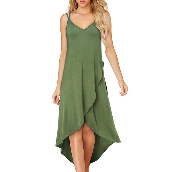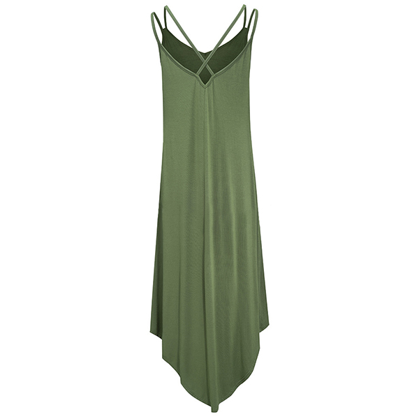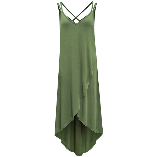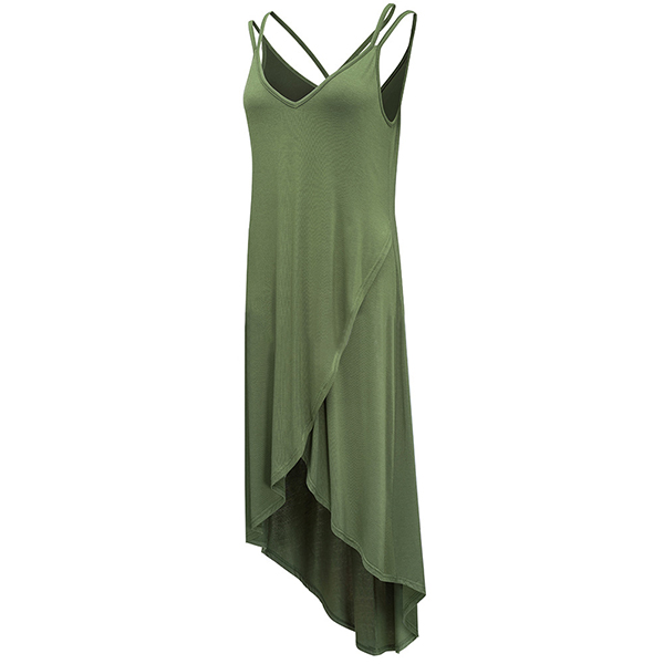 Casual Solid Color V-neck Criss-cross Backless Irregular Hemline Dress