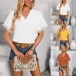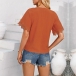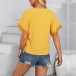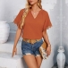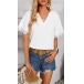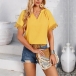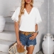 Casual Solid Color V-neck Lace Spliced Short Sleeve Shirt