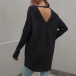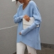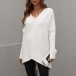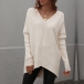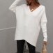 Casual Solid Color V-neck Long Sleeve Backless High-low Hemline Knitted Sweater