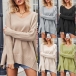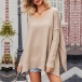 Casual Solid Color V-neck Long Sleeve Knitted Pullover Sweater