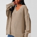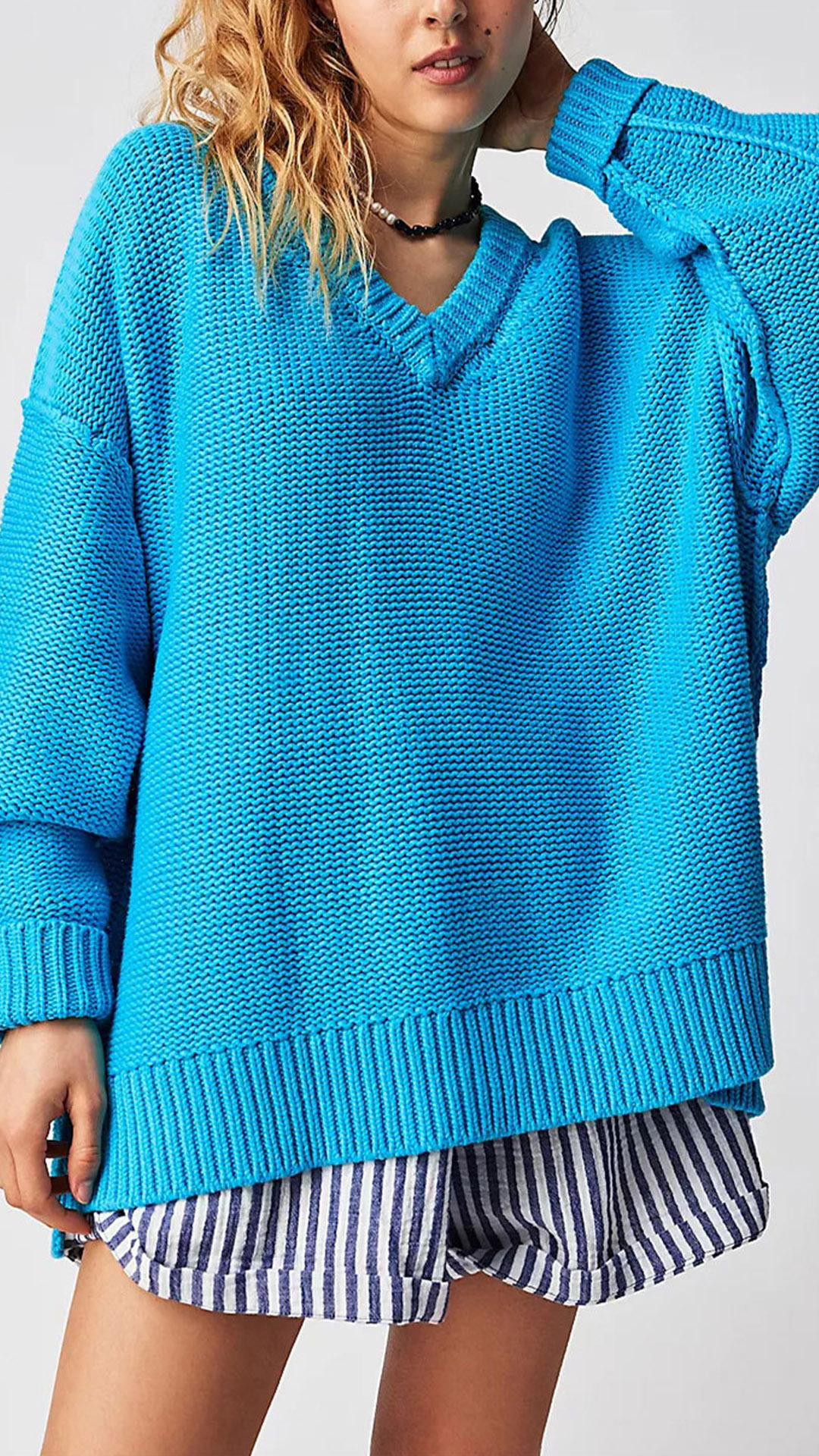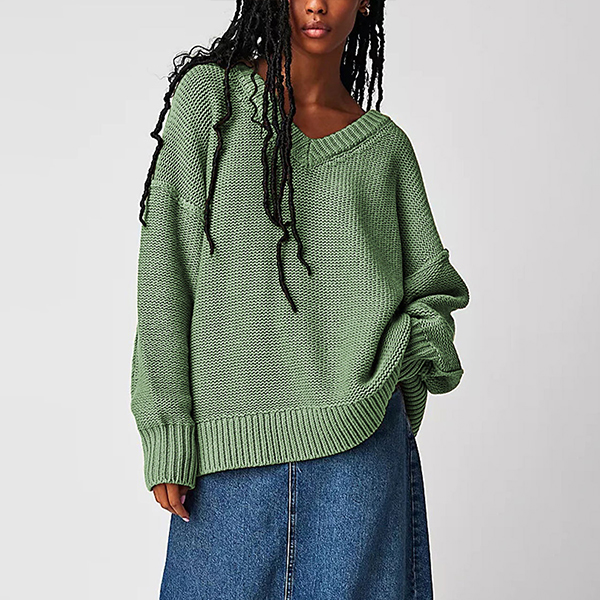 Casual Solid Color V-neck Long Sleeve Loose Knitted Sweater