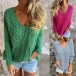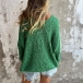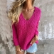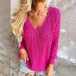 Ce pull arbore un décolleté en V intemporel, des manches longues et une coupe ample décontractée, offrant à la fois confort et style. Son design uni et épuré le rend incroyablement polyvalent, parfait pour toutes vos occasions. Disponible en vert, rose rouge et bleu. Quelle couleur vous séduit le plus ?