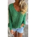 Pull ample à manches longues col en V coloris uni pour un style décontracté