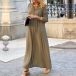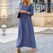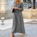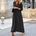 Casual Solid Color V-neck Long Sleeve Maxi Dress
