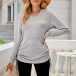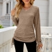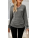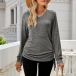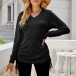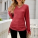 Casual Solid Color V-neck Long Sleeve Side Drawstring Shirt