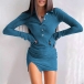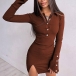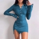 Casual Solid Color V-neck Long Sleeve Slit Bodycon Dress