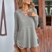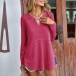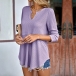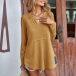 Casual Solid Color V-neck Long Sleeve Waffle Pattern Shirt